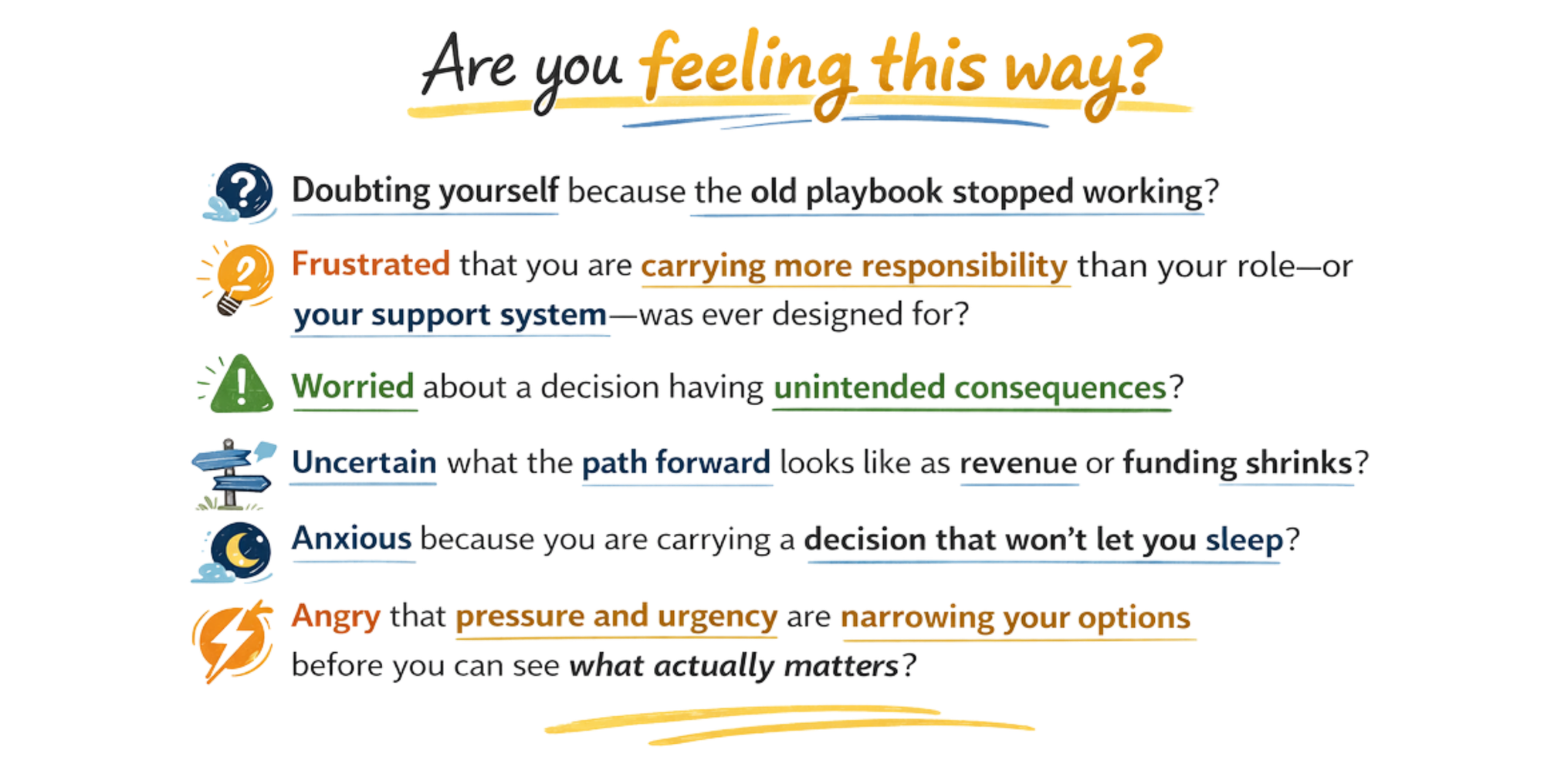 Leaders don't need more advice. They need a partner who helps them see clearly—especially when the pressure is high and your decisions shape people, places, and futures.