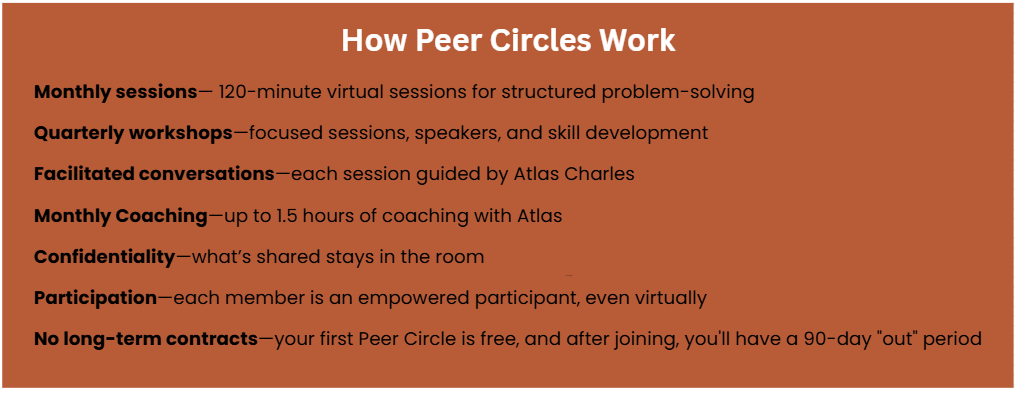 You’re experiencing the conditions Peer Circles are built for—not because something is wrong with you, but because leadership consistently creates isolation, urgency, and pressure.